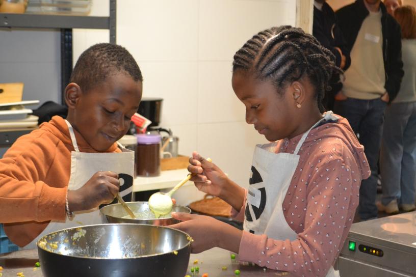 Naast de maaltijden zelf zetten jullie ook in op ‘samen leren over gezonde voeding’. Hoe pakken jullie dat aan?
