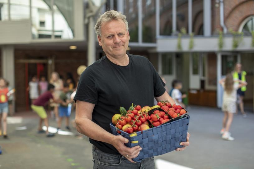 Jan Leenaerts, coördinerend directeur van scholengroep SMD-L: ‘We geloven dat elk kind recht heeft op minstens één warme en evenwichtige maaltijd per dag. Want een goedgevulde maag draagt bij aan betere schoolprestaties, minder schooluitval en een gezondere levensstijl. We boden al langer warme maaltijden aan in onze school, maar we zijn op zoek gegaan naar een gezondere en duurzamere oplossing met de steun van de stad en Rikolto. Die vonden we bij een nieuwe cateraar: vzw Foodatelier César.’