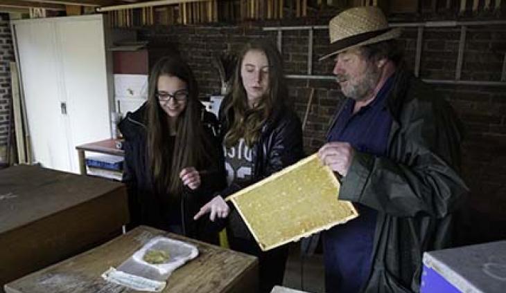 Bezoek de bijenstand met 14 bijenvolkeren, een doorkijkkast, oude korven, nestkastjes voor solitaire bijen, een kruidentuin en paviljoentje met een kleine tentoonstelling.