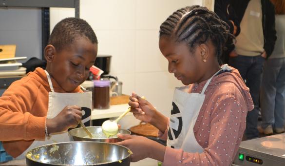 Naast de maaltijden zelf zetten jullie ook in op ‘samen leren over gezonde voeding’. Hoe pakken jullie dat aan?