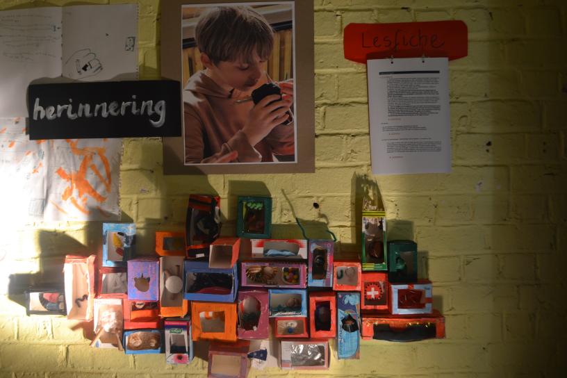 Projectcoördinator Kristel Meeus: “Tijdens inspirerende workshops hebben onze leerlingen en leerkrachten kennisgemaakt met diverse kunstvormen en technieken. Zo zijn ze uitgedaagd om zich te verkleden met niets anders dan tape of om nieuwe dieren te maken door lichaamsdelen van speelgoeddieren te combineren. Ze zijn ook gaan nadenken over het verliezen van herinneringen en hebben doosjes gemaakt om ze in te bewaren.”