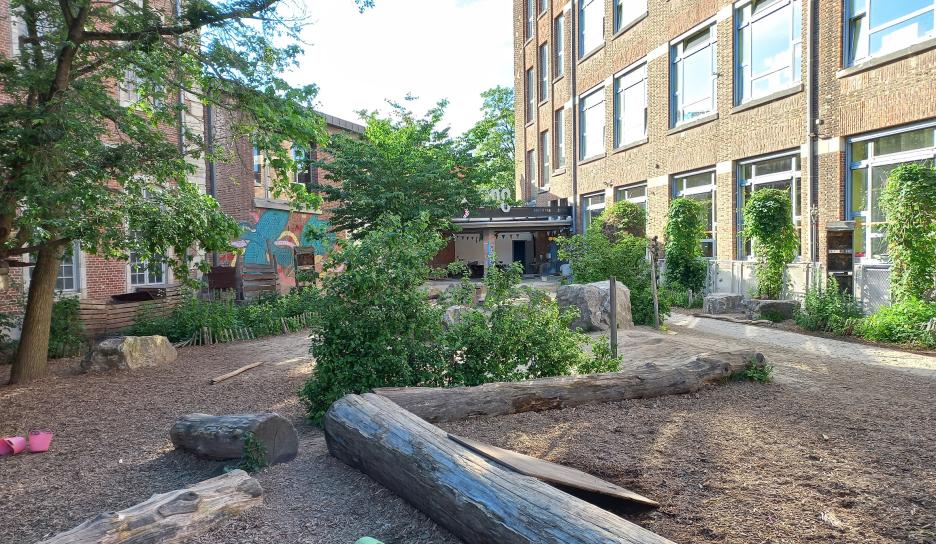 - Een groene speelplaats draagt bij aan de biodiversiteit, zuivert de lucht, laat water beter indringen in de bodem …